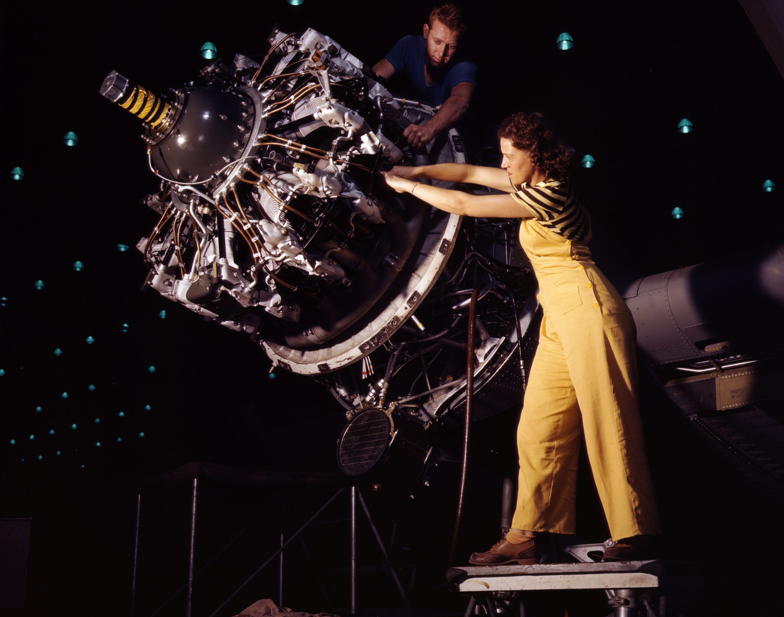 man woman work on R-1830_engine-1942